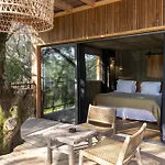 Os quartos com ar condicionado incluem pátio e terraço, equipados com lareira de pedra, e alguns deles são virados para a piscina. Refrigerador e forno também são providenciados. As casas de banho têm chuveiro juntamente com roupões.